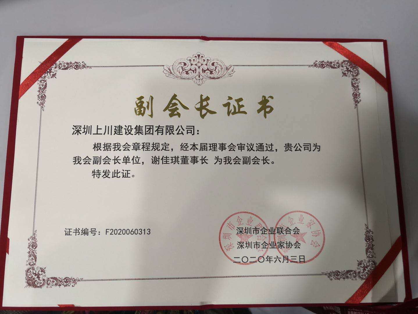 信譽(yù)的見(jiàn)證,上川建設(shè)集團(tuán)董事長(zhǎng)當(dāng)選為深圳市企業(yè)聯(lián)合會(huì)及企業(yè)家協(xié)會(huì)副會(huì)長(zhǎng)!